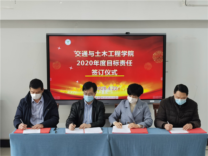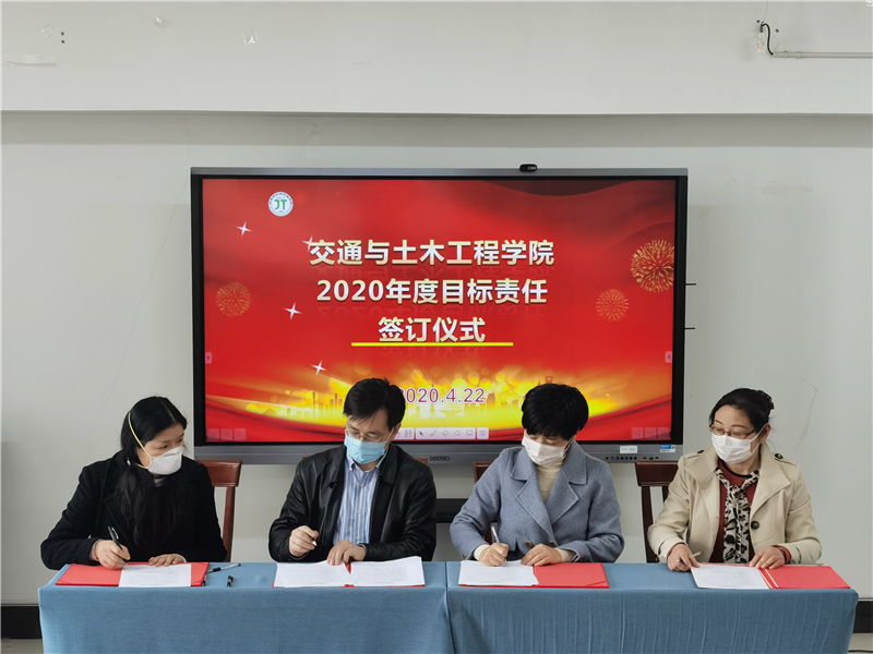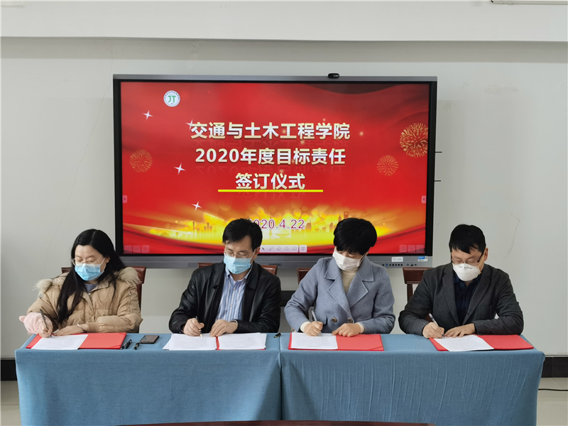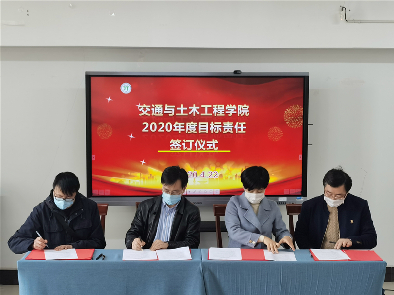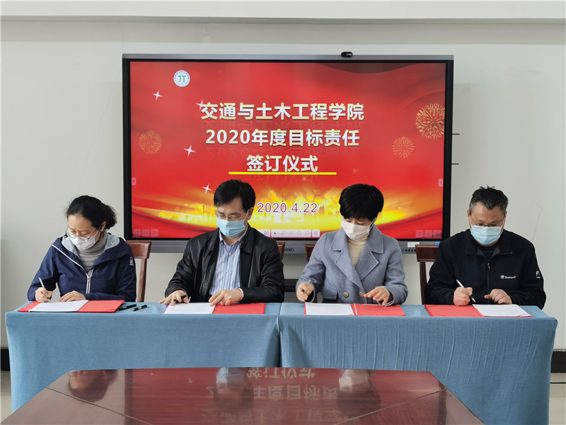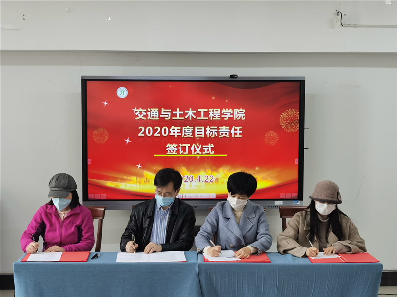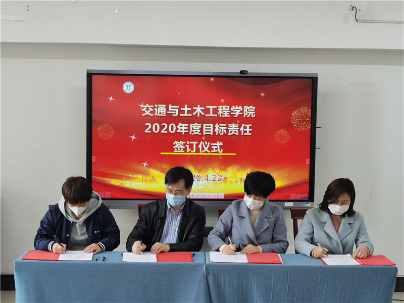 4月22日下午,交通与土木工程学院2020年度目标责任书签订仪式在学院会议室举行。学院党政负责人张莉莉、施佺与每一位教职工依次签字,签订2020年度教职工个人目标责任书。