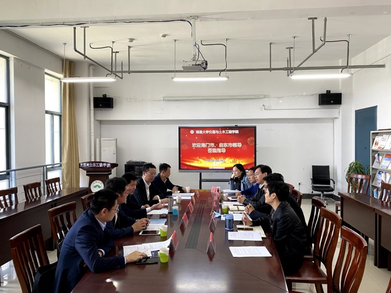 4月29日上午,海门市常委纪委书记姚胜、启东市海复镇党委书记茅永杰、启东市东海镇党委书记陆中华、海门科技局局长黄玮、海门市悦来镇镇长陈东明一行来校调研智慧建筑产业发展情况。会议由交通与土木工程学院院长施佺主持,服务地方工作处处长高江宁,交通与土木工程学院党委书记张莉莉,副院长曹阳,院长助理邵叶秦、陈敏等出席会议。